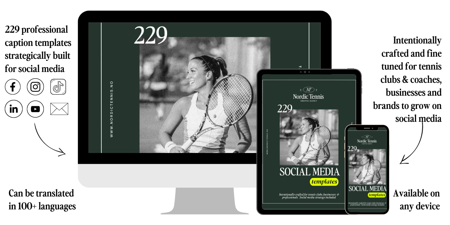 Are you a coach, club owner, or tennis business? Want to finally use social media to grow? Access the most comprehensive library of easy-to-use caption templates — so you can quickly and consistently create professional content online.